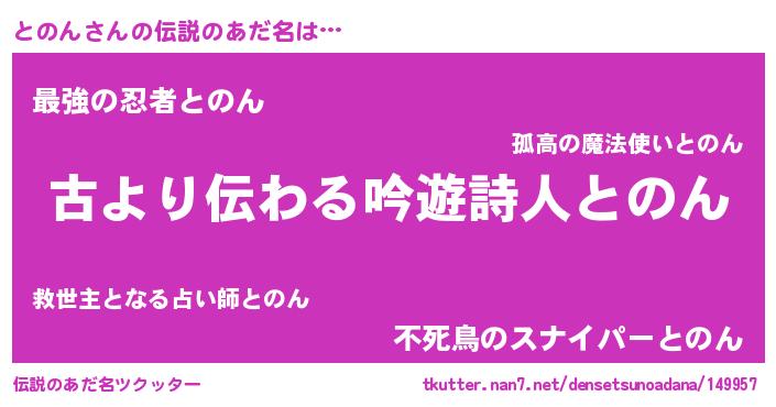 | ヘコむあだ名 | 『とのん(小並感)』『酢こんぶ』 |