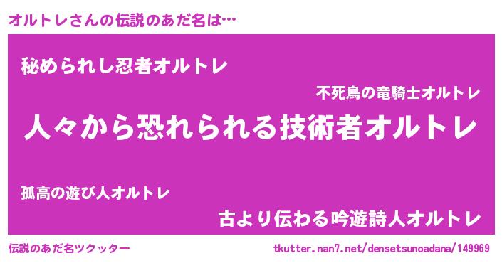 | ヒーロー風カッコイイあだ名 | 『ウルトラ戦士オルトレ』『ネオオルトレ』 |