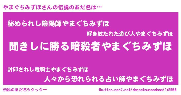 | 胡散臭い通販商品みたいなあだ名 | 『絶対に幸福をもたらす健康食品…その名も「やまぐちみずほ」』 |
