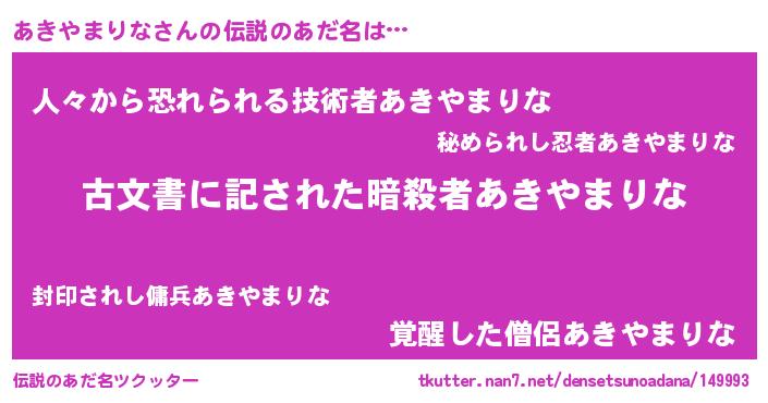 | 意味不明あだ名 | 『永久保存あきやまりな』 |