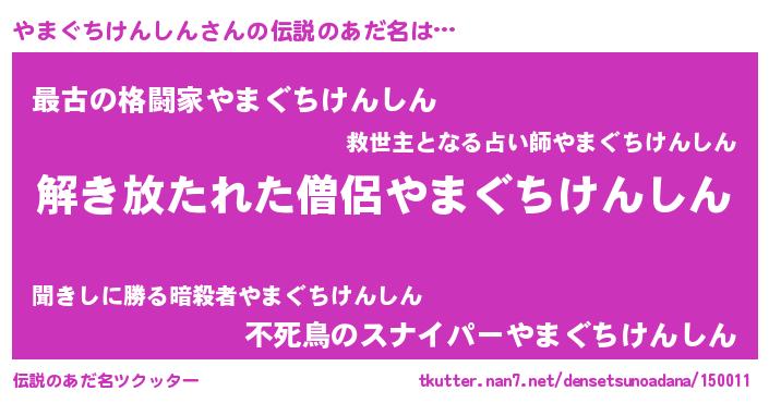 | 欧米人風あだ名 | 『アンジェラ・やまぐちけんしん』 |