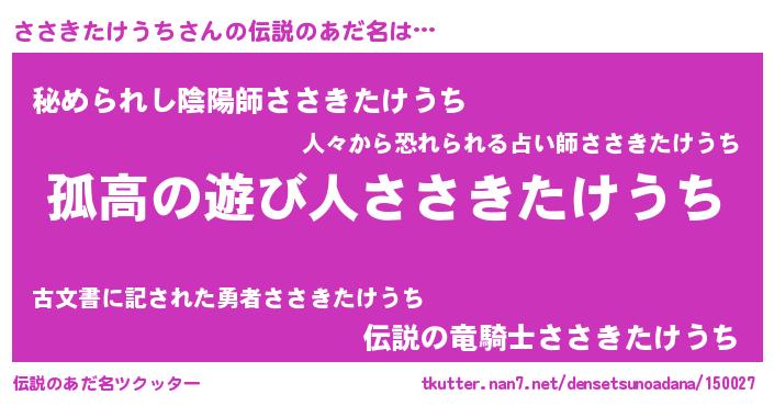 | 意味不明あだ名 | 『住所不定無職ささきたけうち(98歳)』 |