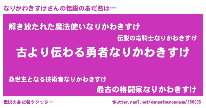 | 意味不明あだ名 | 『永久保存なりかわきすけ』 |