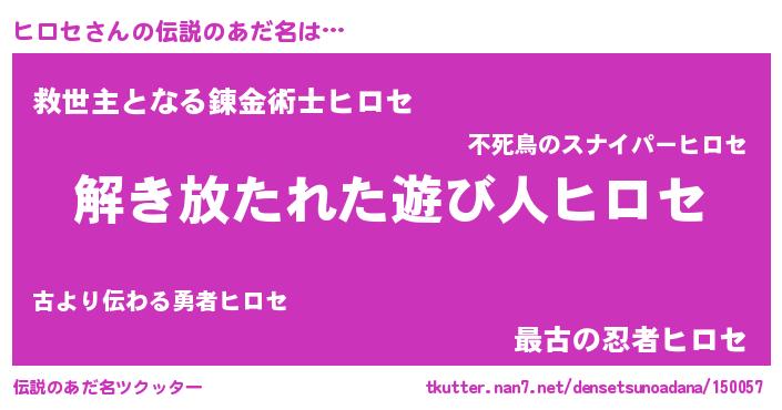 | 男性向けラノベタイトル風あだ名 | 『ダンジョンにヒロセを求めるのは間違っているだろうか』 |