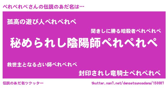 | 意味不明あだ名 | 『ぺれぺれぺフォーエバー』 |