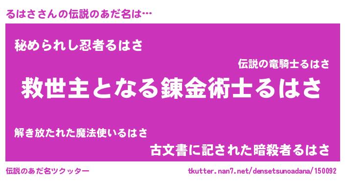 | 女子向けラノベタイトル風あだ名 | 『死神るはさの再婚』『るはさ伯爵の花嫁』 |