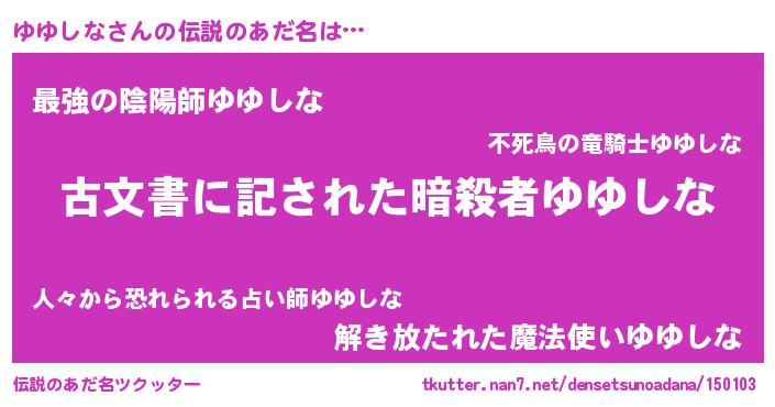 | 意味不明あだ名 | 『永久保存ゆゆしな』『自称ゆゆしな』 |