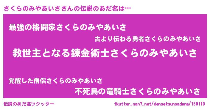 | 胡散臭い通販商品みたいなあだ名 | 『モンドセレクションを受賞した隕石のかけら…その名も「さくらのみやあいさ」』 |