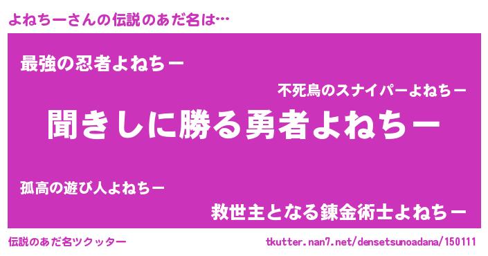 | 男性向けラノベタイトル風あだ名 | 『よねちーという概念が存在しない退屈な世界 』 |