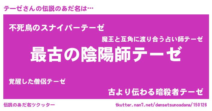 | 女子向けラノベタイトル風あだ名 | 『闇のテーゼ』『テーゼの雑貨屋さん』 |