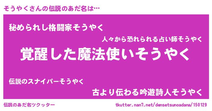 | ヒーロー風カッコイイあだ名 | 『仮面ソウダー』『幻影騎士ソウ』 |