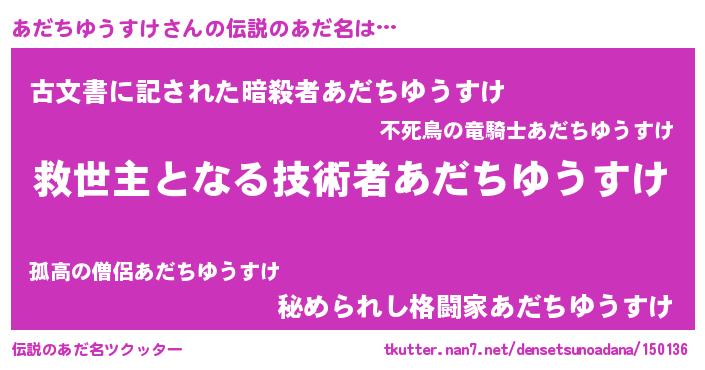 | ヒーロー風カッコイイあだ名 | 『慈愛の使者あだちゆうすけ』 |