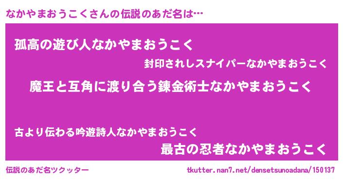 | 肩書あだ名 | 『なかやまおうこく上級大将』 |