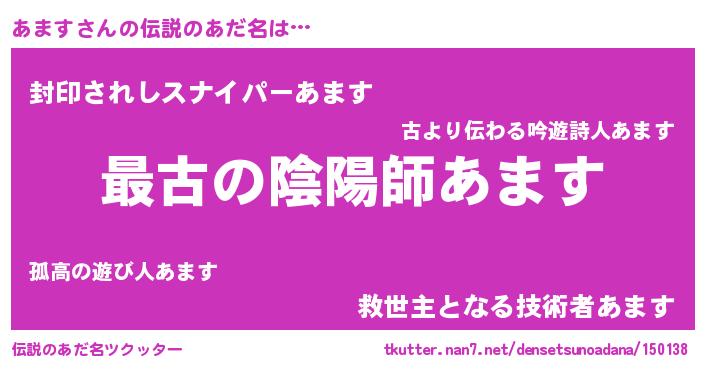 | 男性向けラノベタイトル風あだ名 | 『転生したらあますだった件』 |