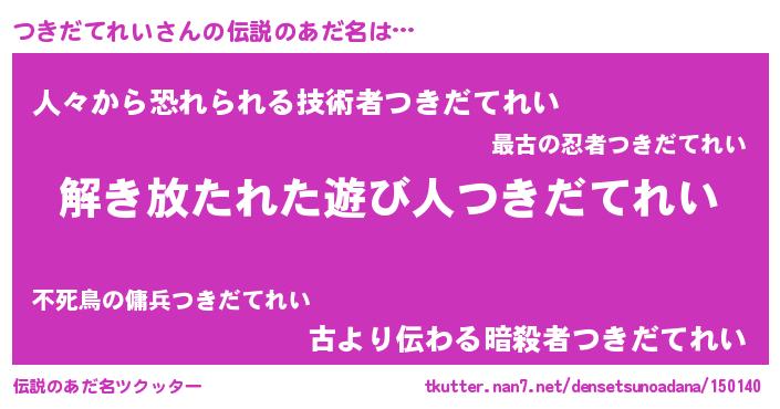 | ポケモン風あだ名 | 『ヒツキダテレイ』『ツックウザ』 |