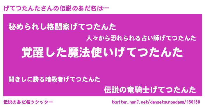 | 胡散臭い通販商品みたいなあだ名 | 『全米が絶賛したサプリメント…その名も「げてつたんた」』 |