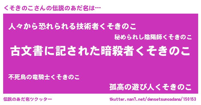 | 意味不明あだ名 | 『永久保存くそきのこ』『自称くそきのこ』 |