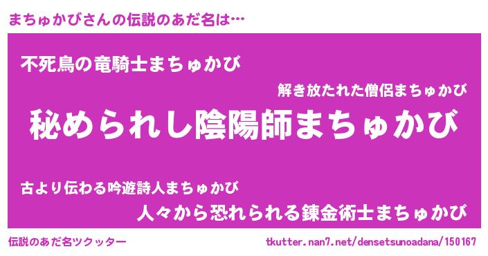 | ヒーロー風カッコイイあだ名 | 『仮面マチダー』『究極戦士マチュカビ』 |