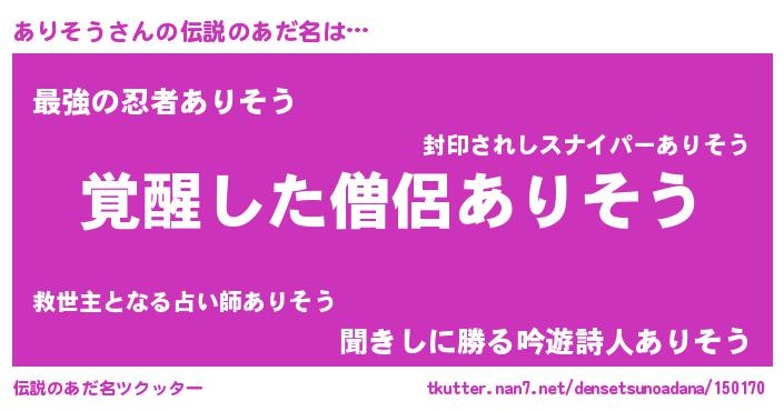 | 男性向けラノベタイトル風あだ名 | 『この素晴らしい世界にありそうを!』 |