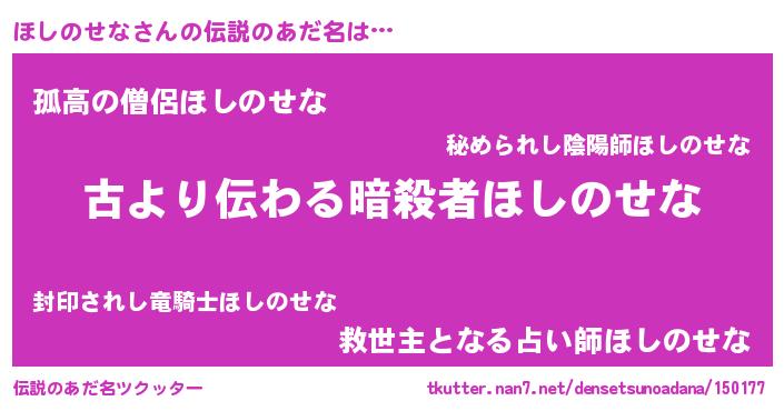 | 意味不明あだ名 | 『住所不定無職ほしのせな(43歳)』 |