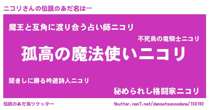 | ヘコむあだ名 | 『ニコを』『なまこ酢』『ニコにー』 |