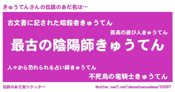 | 意味不明あだ名 | 『自称きゅうてん』『ニラ科きゅうてん属』 |