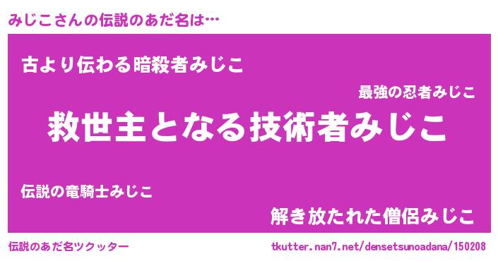 | 意味不明あだ名 | 『住所不定無職みじこ(11歳)』 |
