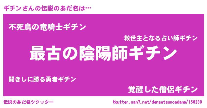 | ファンタジー風あだ名 | 『エターナルギチンー』『ギチフェル』 |
