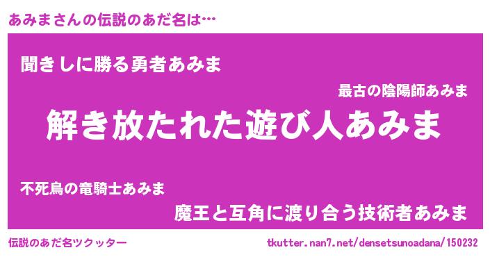 | ヒーロー風カッコイイあだ名 | 『サイバー戦士アミマ』『黄金騎士アミ』 |