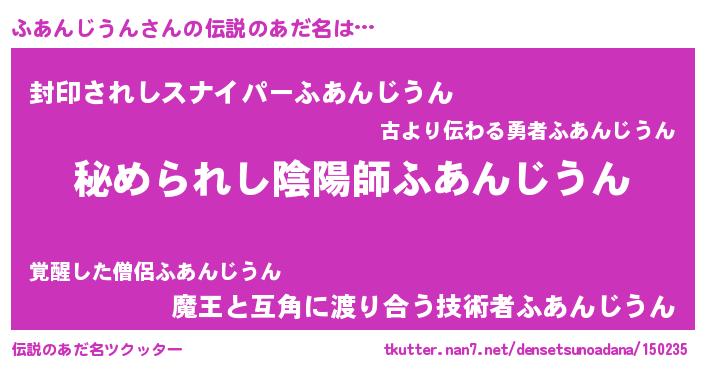 | ヒーロー風カッコイイあだ名 | 『ウルトラふあんじうんマン』 |