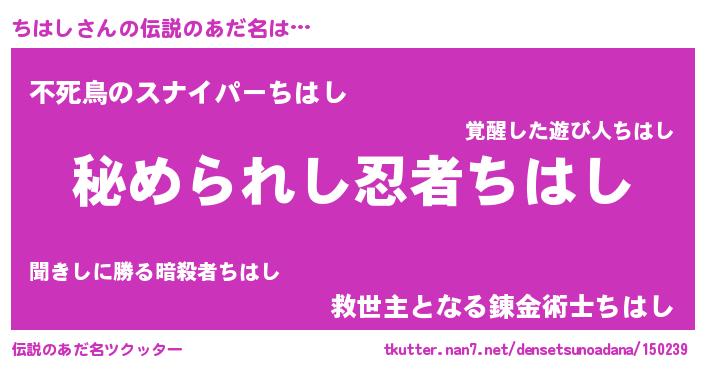 | ファンタジー風あだ名 | 『カークチハラー』『エターナルチハシー』 |