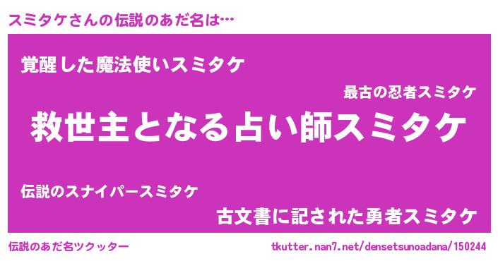 | 意味不明あだ名 | 『ニラ科スミタケ属』『自称スミタケ』 |