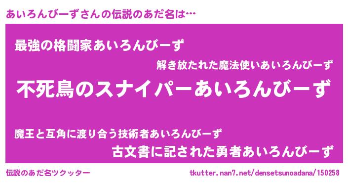 | 男性向けラノベタイトル風あだ名 | 『あいろんびーずの憂鬱』 |