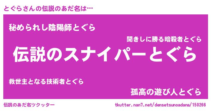 | ヒーロー風カッコイイあだ名 | 『スーパートグラ』『ウルトラとぐらマン』 |