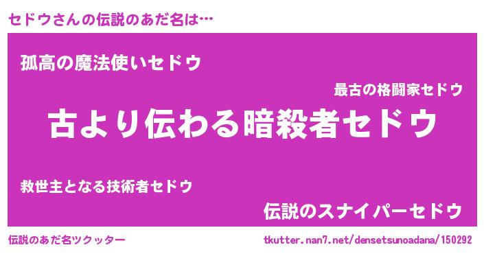 | ヒーロー風カッコイイあだ名 | 『サイバー戦士セドウ』『ネオセドウ』 |