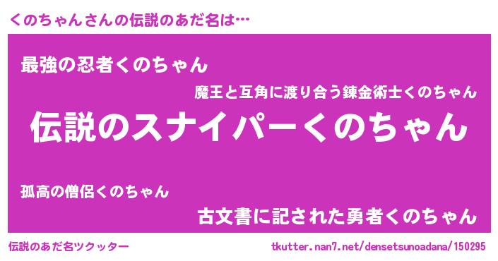 | ヒーロー風カッコイイあだ名 | 『仮面クノダー』『スーパークノチャン』 |