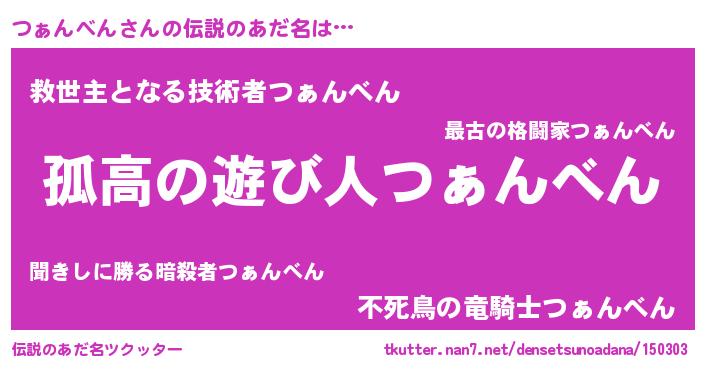 | 胡散臭い通販商品みたいなあだ名 | 『信頼と実績のペンダント…その名も「つぁんべん」』 |