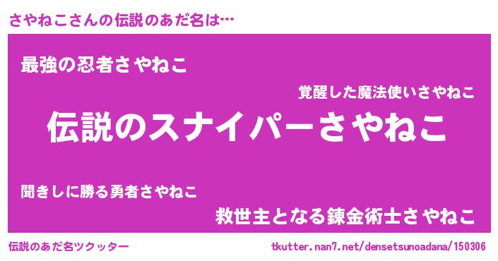 | ファンタジー風あだ名 | 『サヤフェル』『エターナルサヤネコー』 |