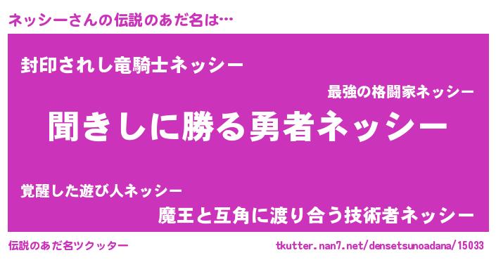 | 男性向けラノベタイトル風あだ名 | 『ネッシーという概念が存在しない退屈な世界 』 |