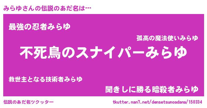 | ヒーロー風カッコイイあだ名 | 『スーパーミラユ』『ウルトラみらゆマン』 |