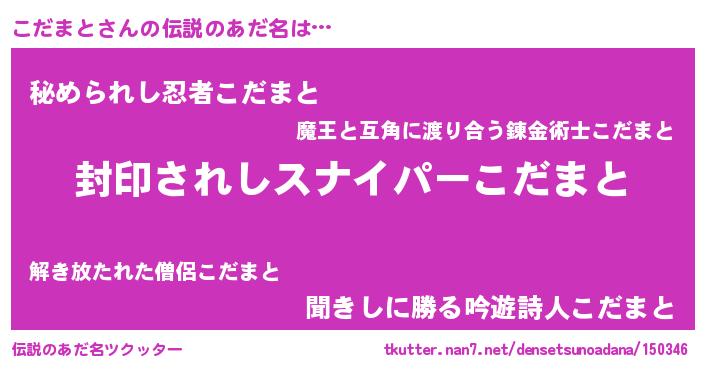 | ヒーロー風カッコイイあだ名 | 『スーパーコダマト』『仮面コダダー』 |