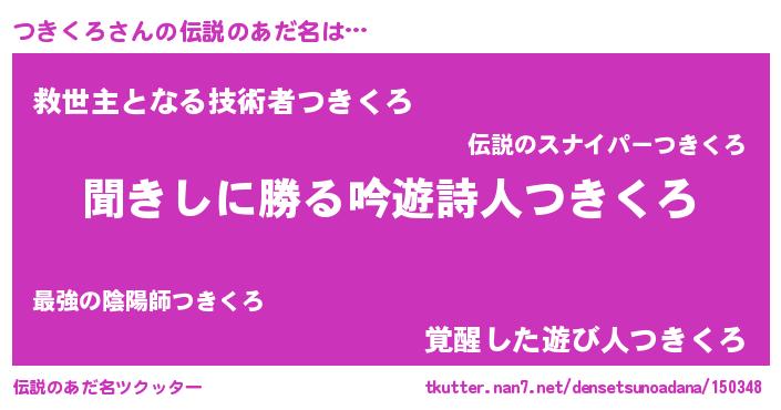 | ヘコむあだ名 | 『つきくろ(小並感)』『つきお』 |