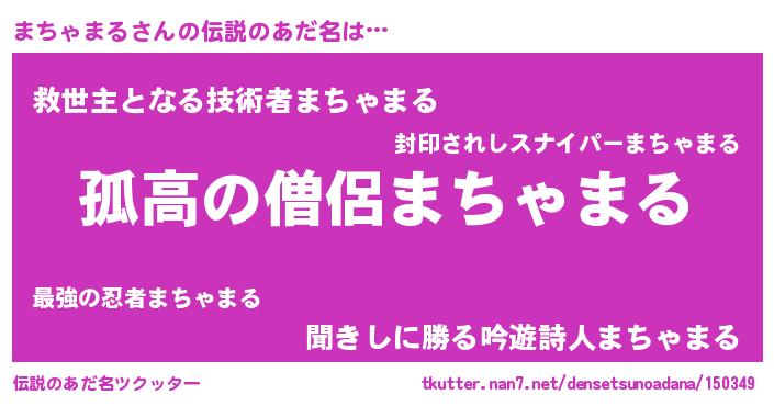 | 男性向けラノベタイトル風あだ名 | 『マチャマルスレイヤー』 |