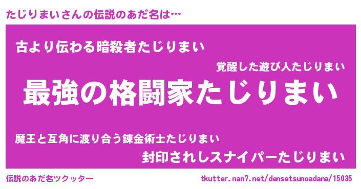 | 意味不明あだ名 | 『自称たじりまい』『永久保存たじりまい』 |