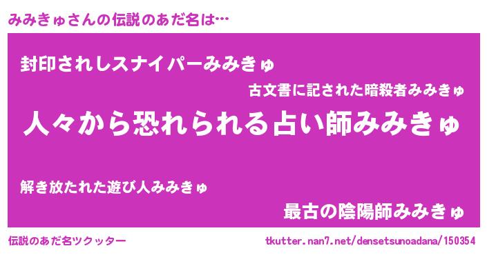 | ヒーロー風カッコイイあだ名 | 『友情の使者みみきゅ』『ネオミミキュ』 |