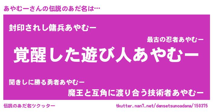 | 意味不明あだ名 | 『とにかく怪しいあやむー』 |