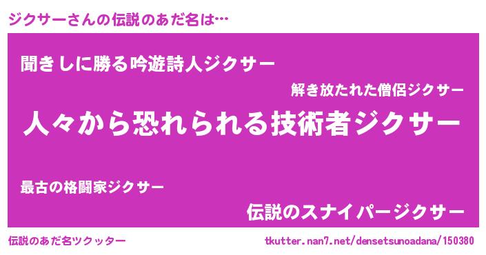| ヒーロー風カッコイイあだ名 | 『正義の使者ジクサー』『仮面ジクダー』 |