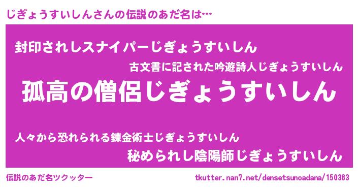 | 男性向けラノベタイトル風あだ名 | 『魔弾の王とじぎょうすいしん』 |