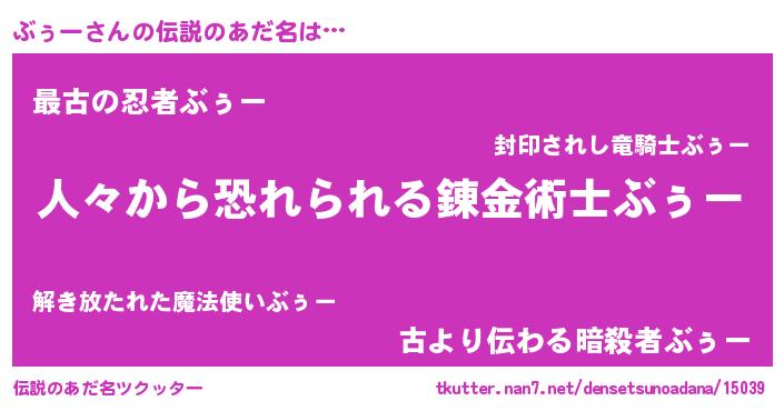| 男性向けラノベタイトル風あだ名 | 『魔法科高校のぶぅー』 |