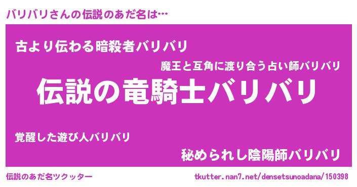 | ヒーロー風カッコイイあだ名 | 『スーパーバリバリ』『ネオバリバリ』 |